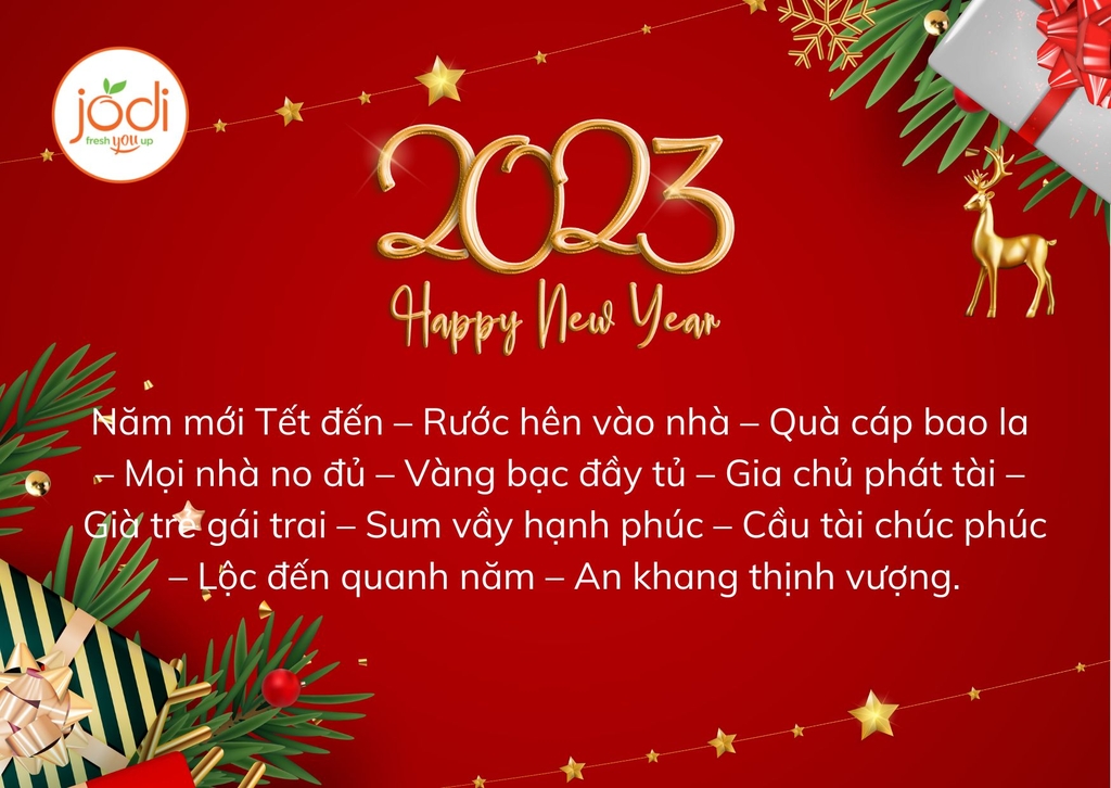 Trên đây là những câu chúc Tết hay, ngắn gọn và ý nghĩa nhất năm 2023 mà Jodi muốn chia sẻ đến bạn. Chúc bạn và gia đình có một năm mới tràn đầy niềm vui, sức khỏe, hạnh phúc!